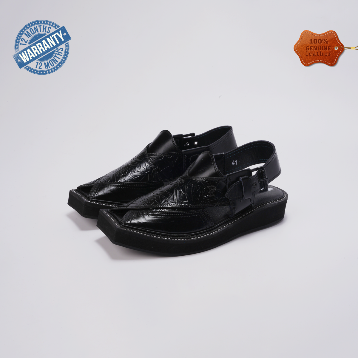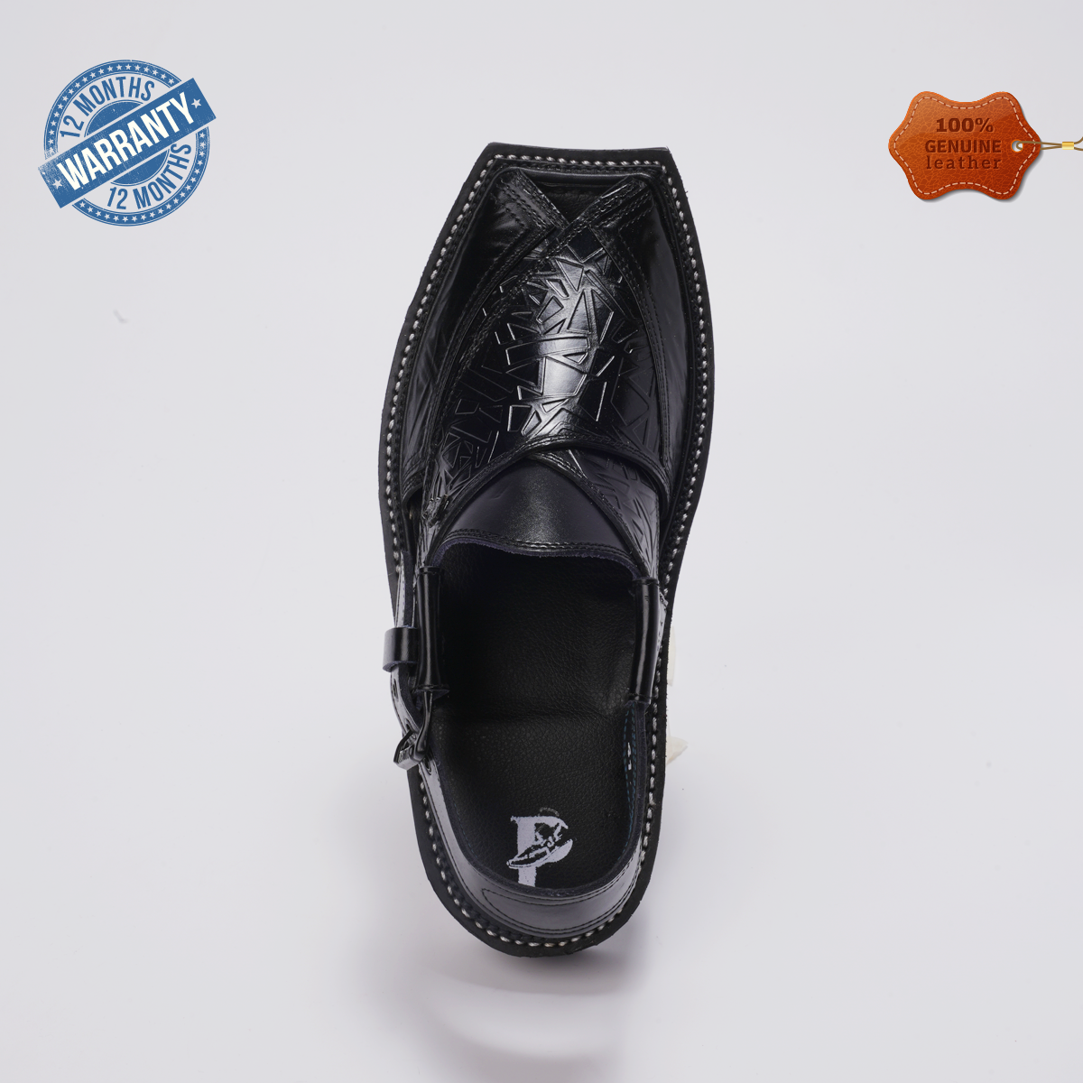 Handmade Embossed Leather Peshawari Chappals – Kaptaan Sole - F-51(CHARCOAL)