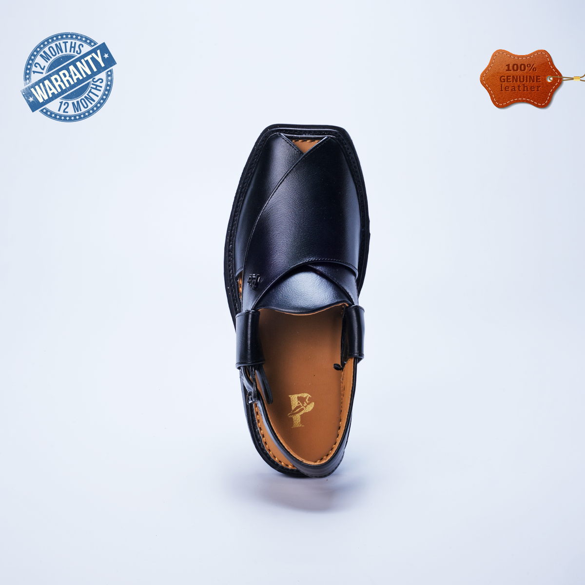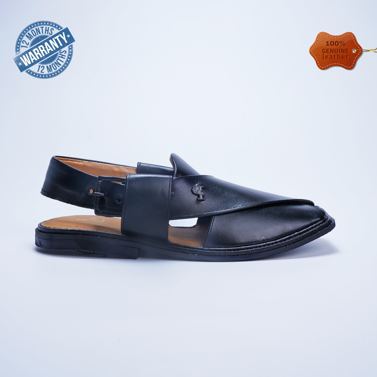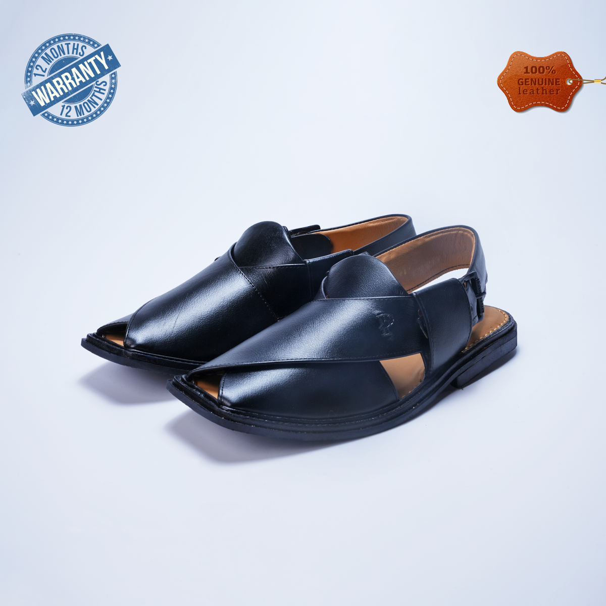 - Handmade Leather Peshawari Chappals – Signature Curved Design – Charsadda Sole - F-55 (CHARCOAL)