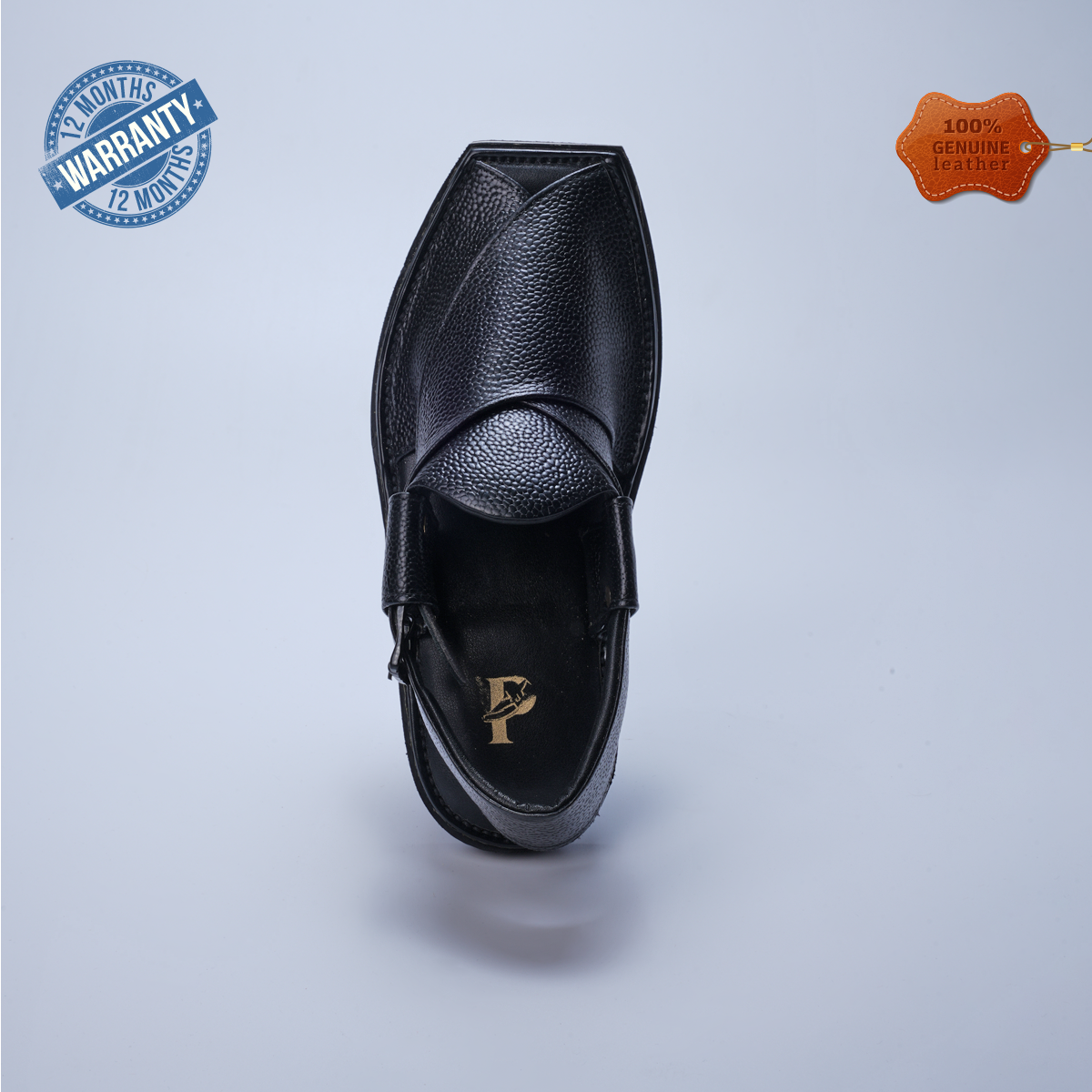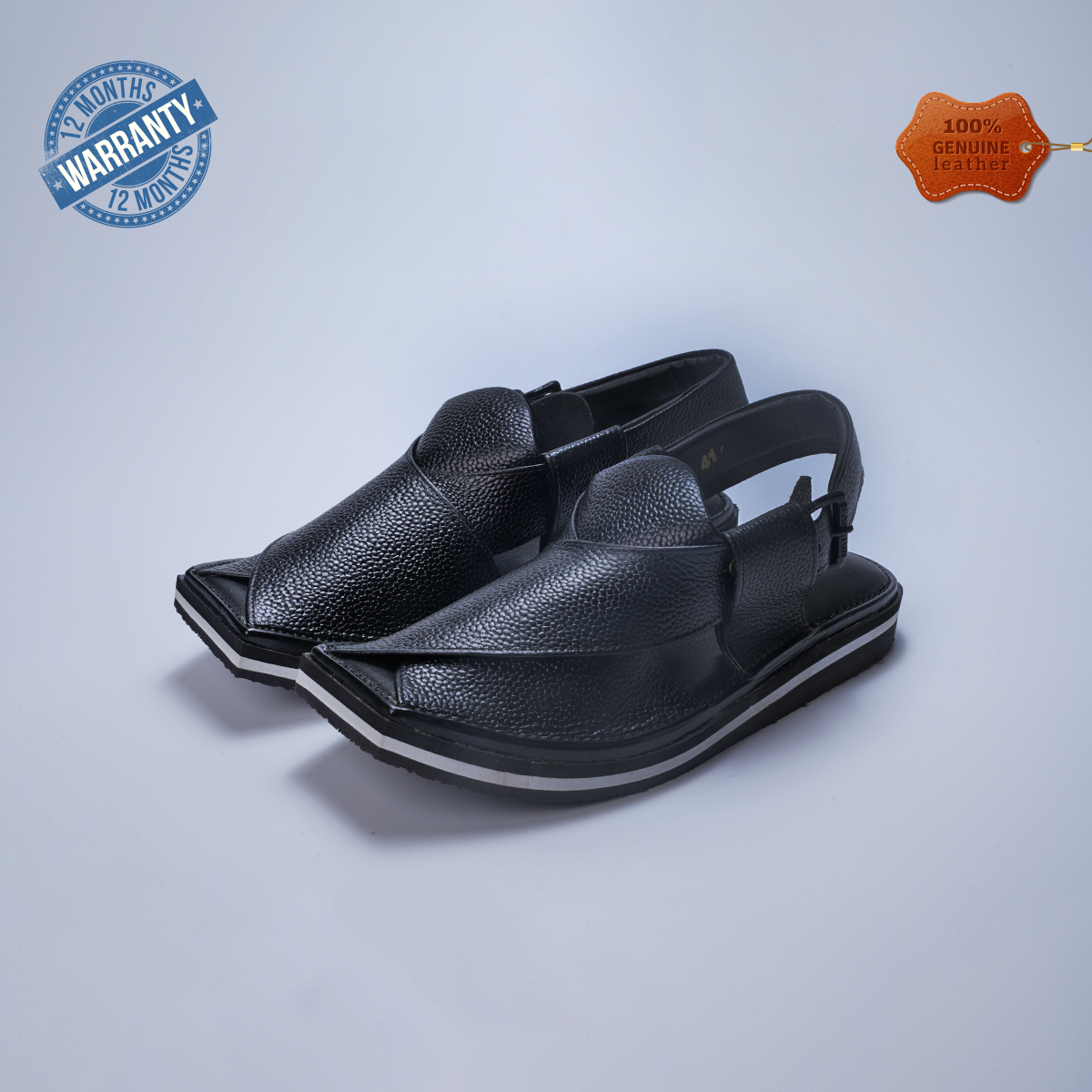 Handmade Embossed Leather Peshawari Chappals – Kaptaan Sole - F-51(CHARCOAL)