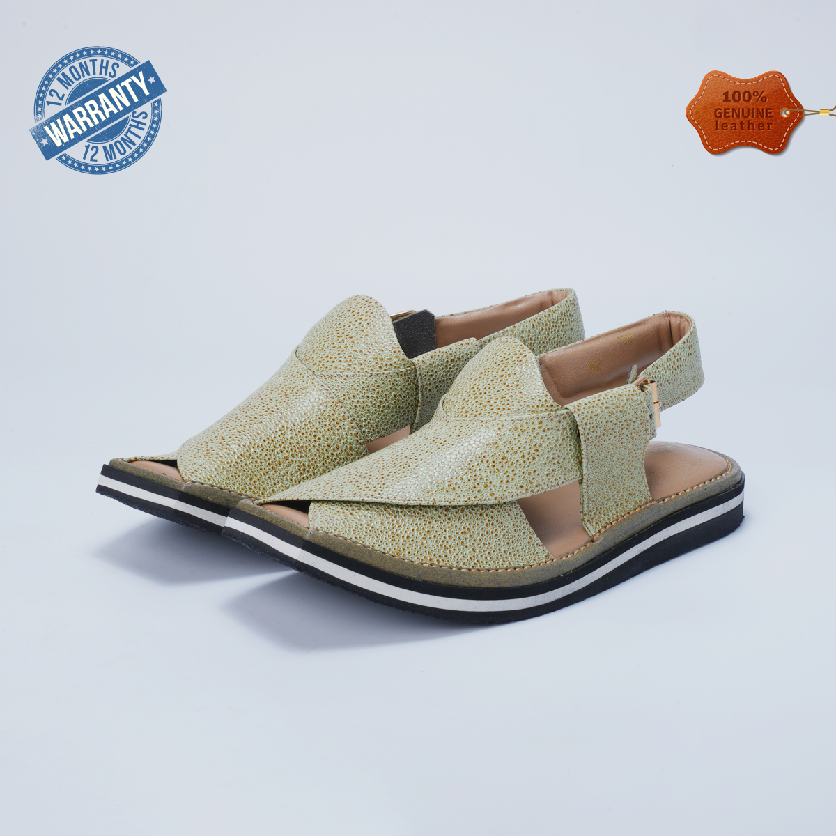 Handmade Embossed Leather Peshawari Chappals – Kaptaan Sole - F-51 (WHITE)