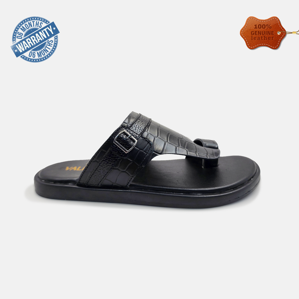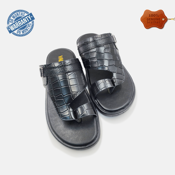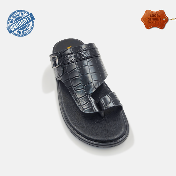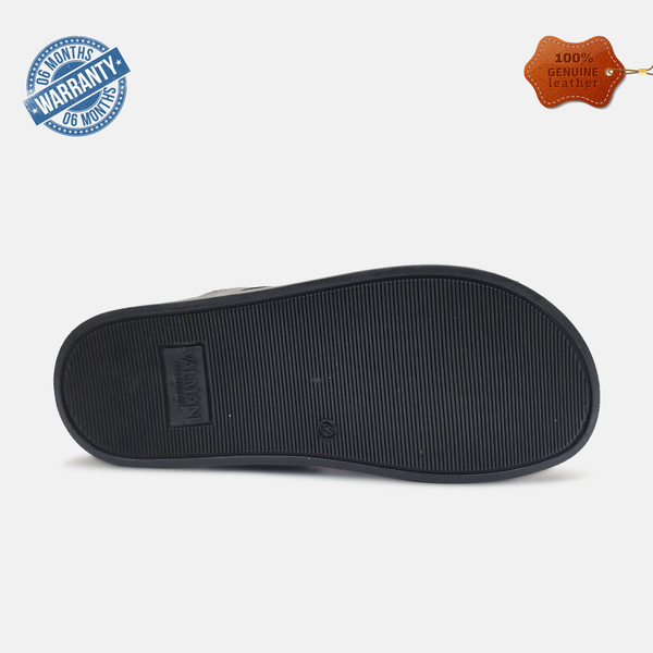 K-3515 BLACK Handmade Leather Slippers – Premium Comfort with Rubber Sole